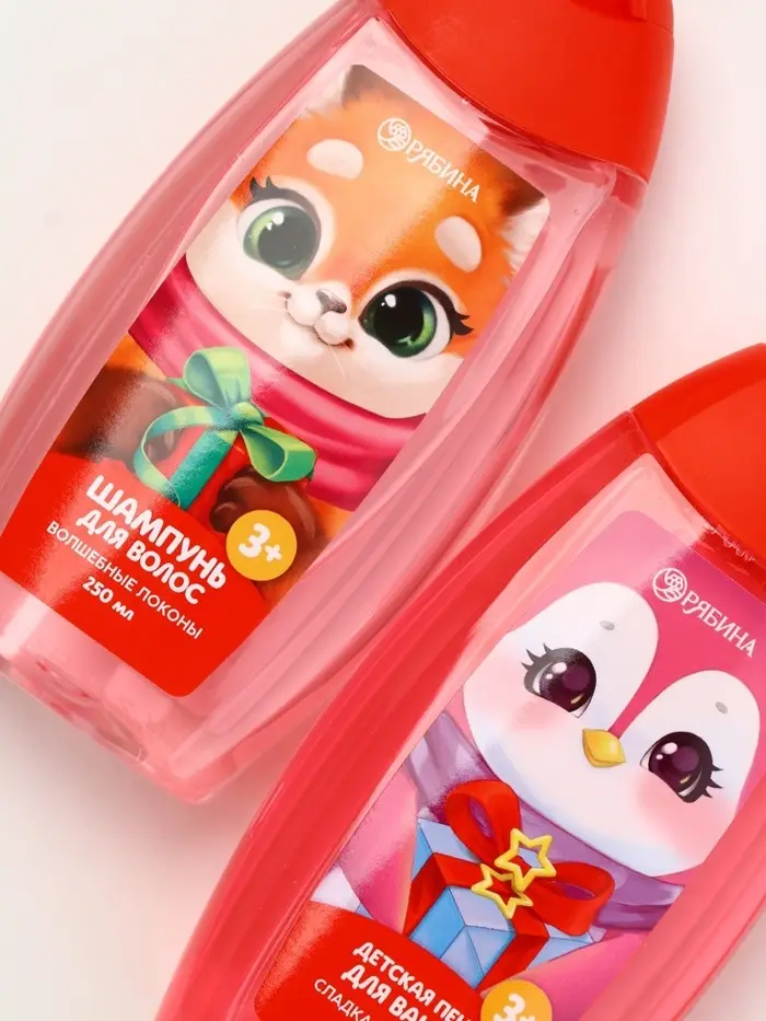 Подарочный набор для девочки «Для тебя»: пена для купания, шампунь для волос и мочалка утка, Чистое счастье