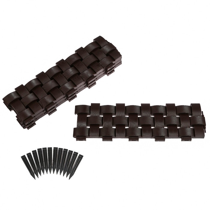 Ограждение декоративное, 19,5 × 240 см, 4 секций, пластик, коричневое