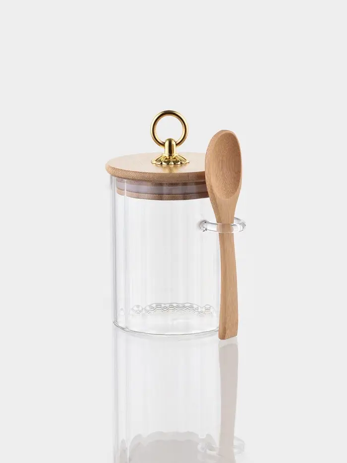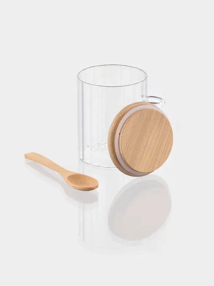 Сахарница с крышкой и ложкой из бамбука, 500 мл, 8х10,4 см