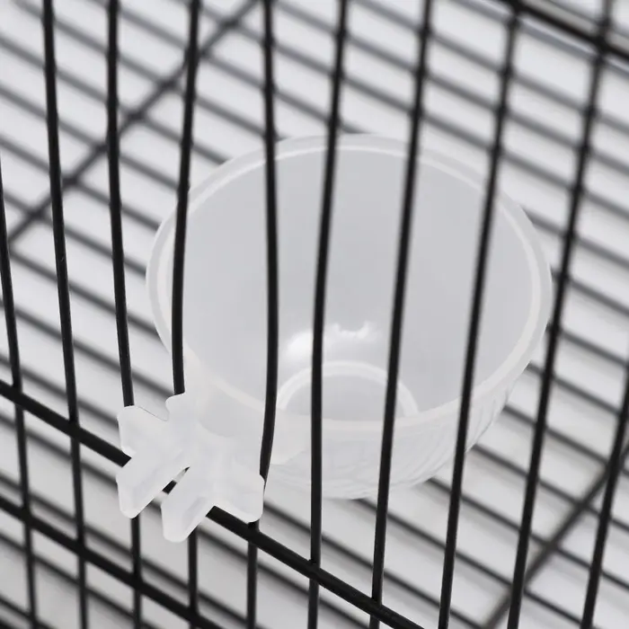 Имеет удобное крепление, благодаря которому надежно фиксируется в клетке.