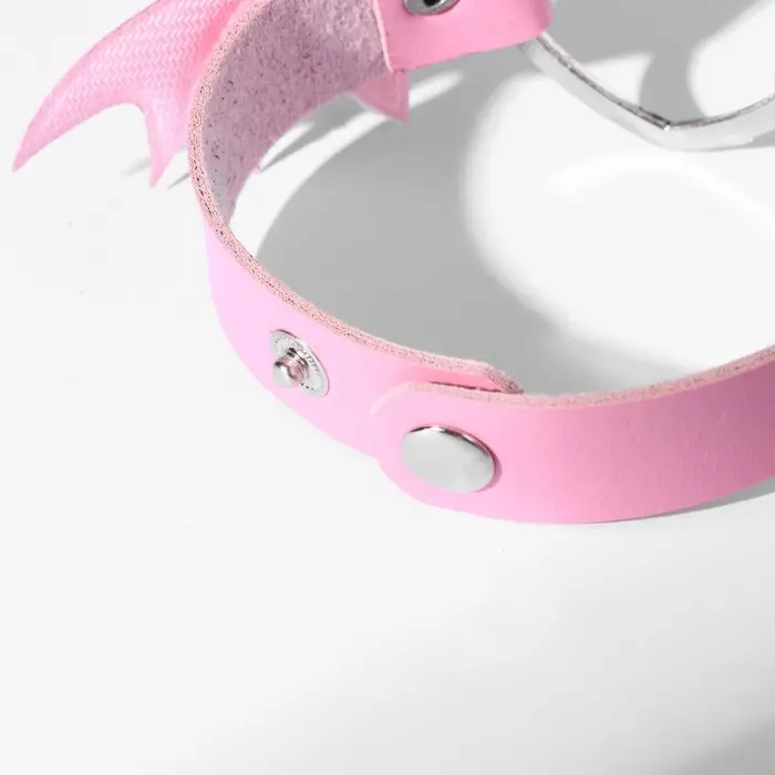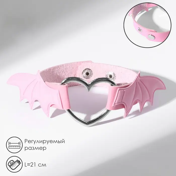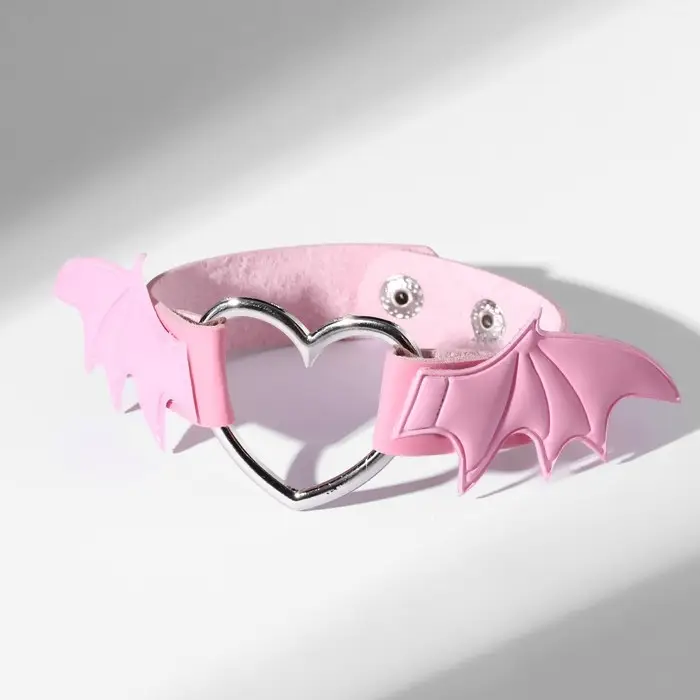 Браслет кожа «Летучая мышь», цвет розовый в серебре