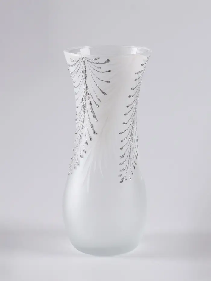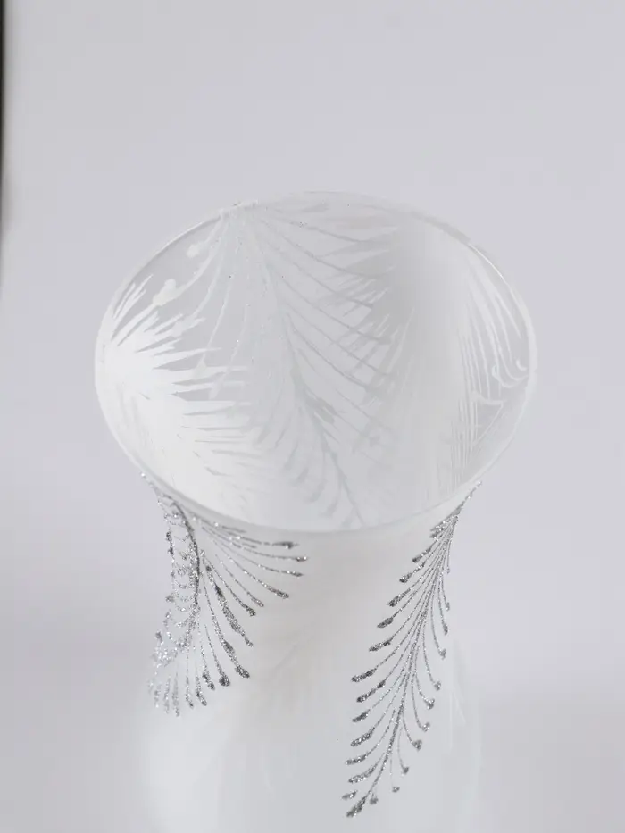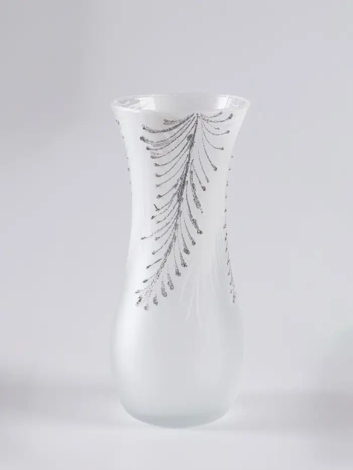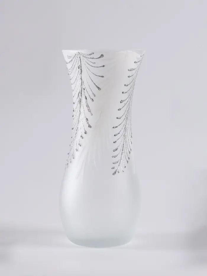 Эта стеклянная ваза с лаконичной росписью в виде перьев — изящный акцент для вашего интерьера. Её простой дизайн вносит ноту лёгкости и современности, не перегружая пространство. Идеальная высота делает её заметной на обеденном столе, консоли или журнальном столике.
