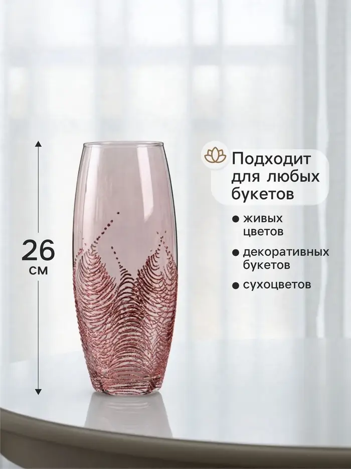 - Эстетика и универсальность: Светло-розовый цвет вазы добавляет нежности и элегантности в ваш интерьер, прекрасно сочетается с различными цветовыми палитрами и стилями оформления.