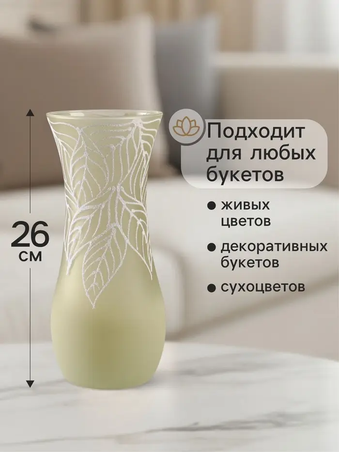 - Бледно-зелёный цвет вазы подходит для любого стиля интерьера.