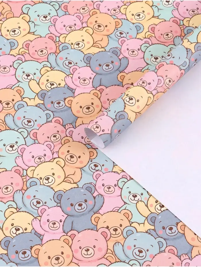 Бумага упаковочная крафтовая «Весёлые медведи», 50 × 70 см