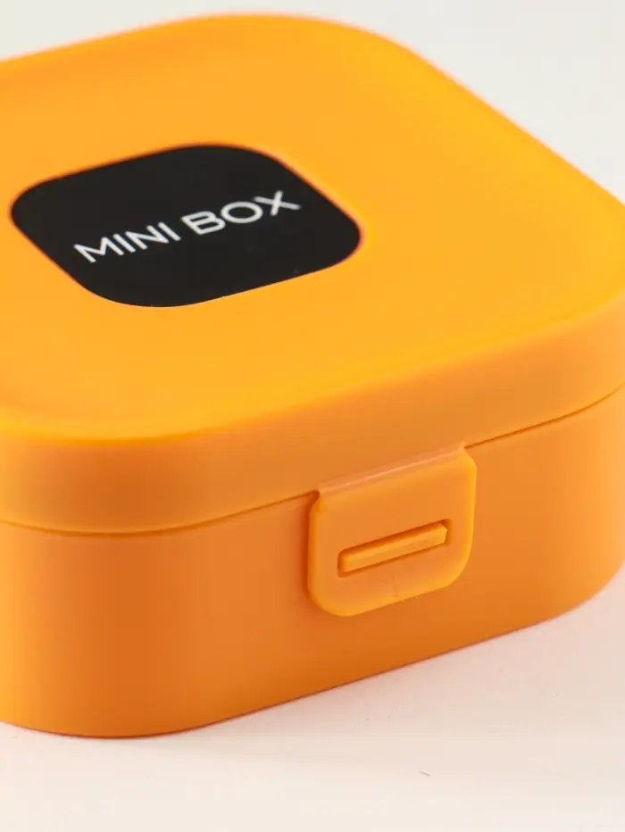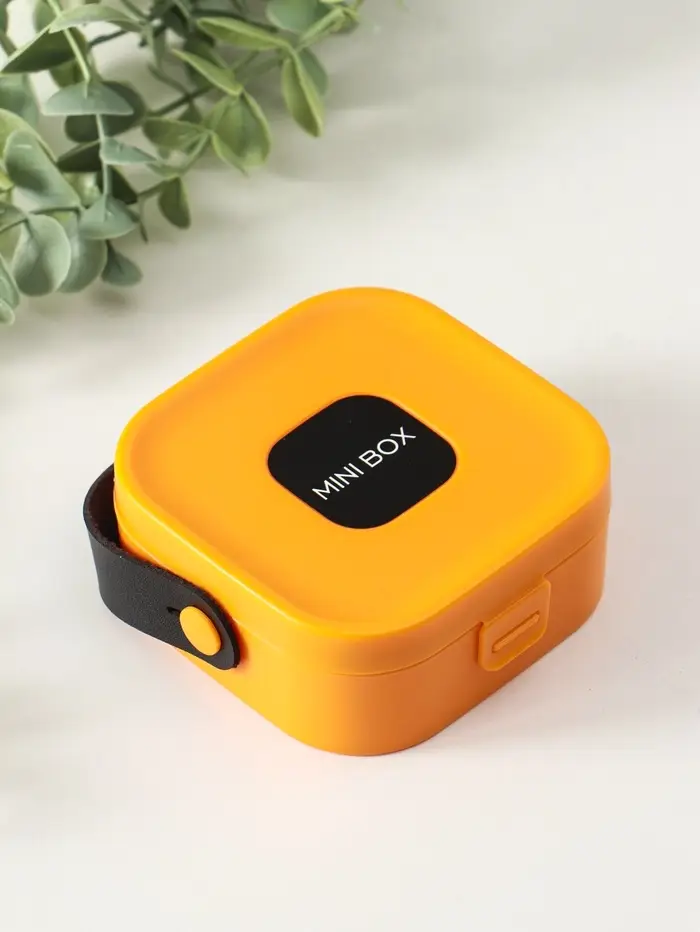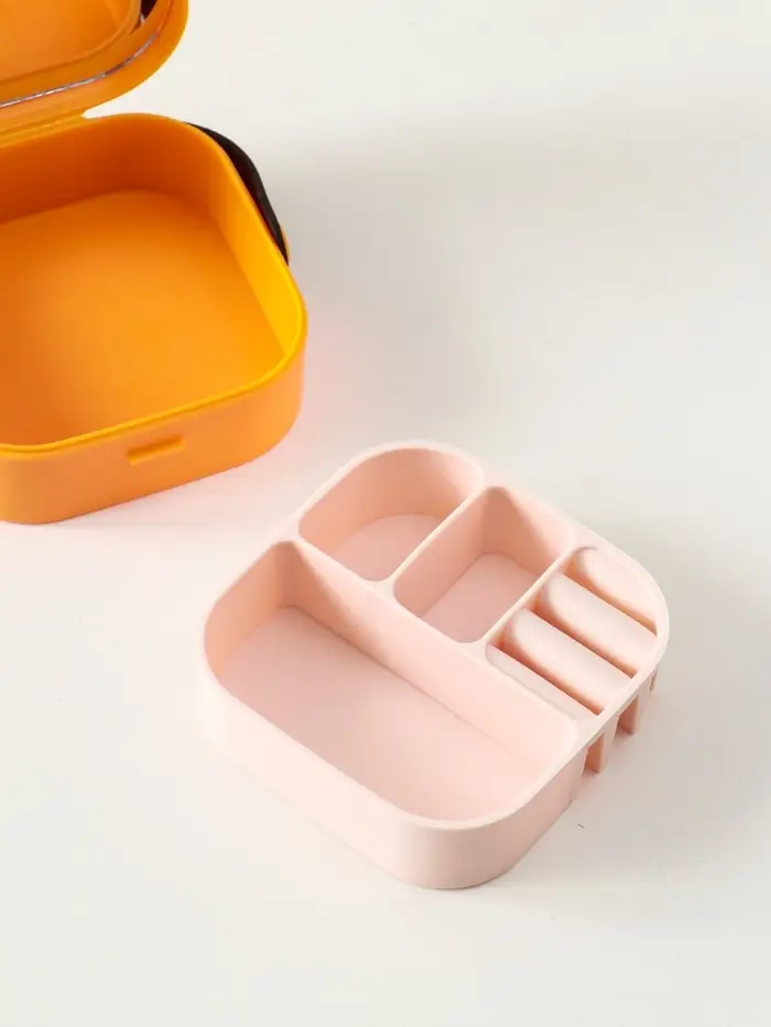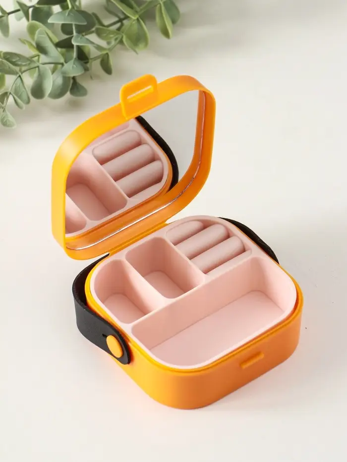 Шкатулка пластик для украшений с зеркалом, с ручкой 3 ячейки, 3 полосы, оранж 9х9х3,8 см