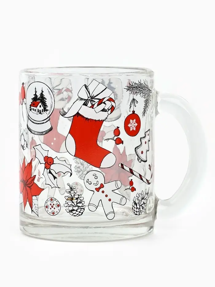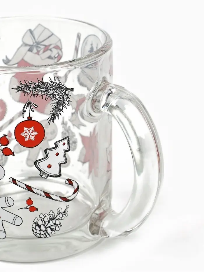 Стеклянная новогодняя кружка — это стильный и практичный аксессуар для вашей кухни или офиса.