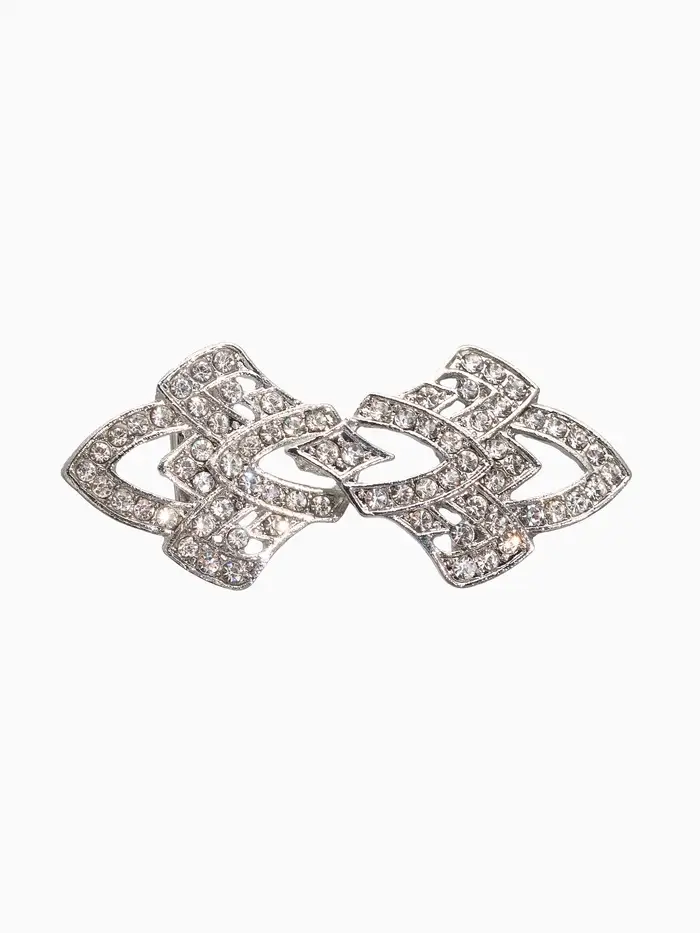 Зажим для кардигана "Ажур", винтажные пики, цвет белый в серебре