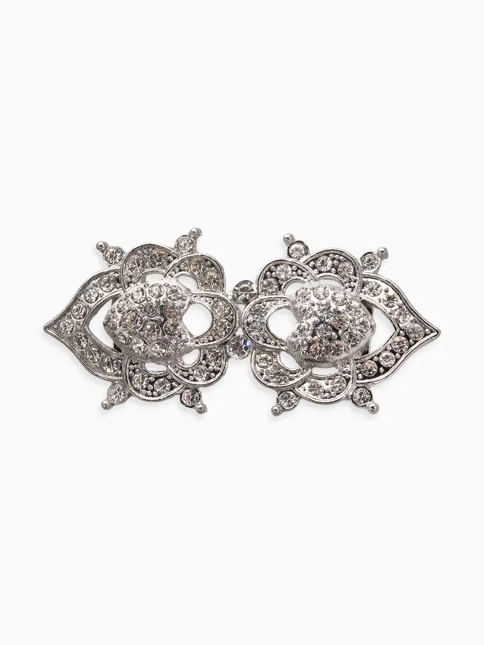 Зажим для кардигана "Ажур", кокошник, цвет белый в серебре