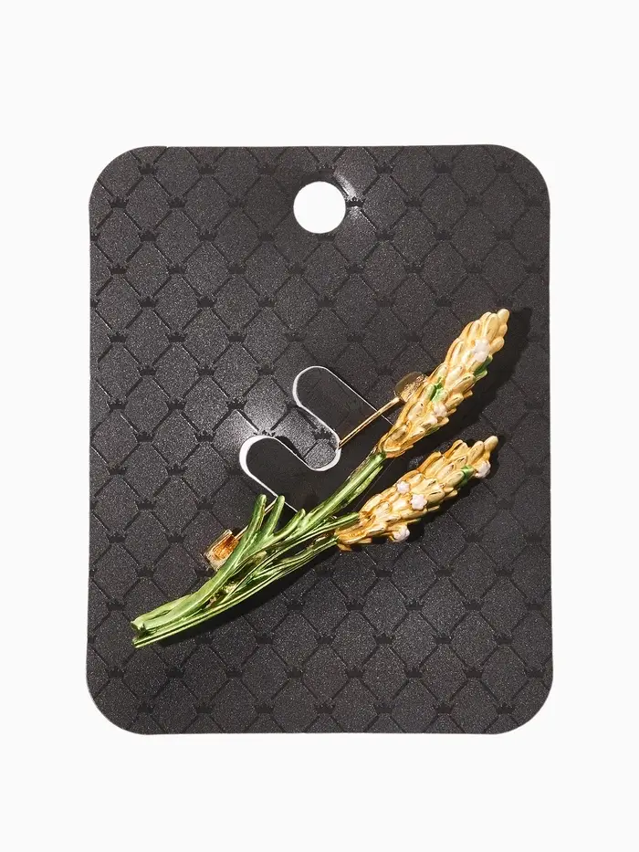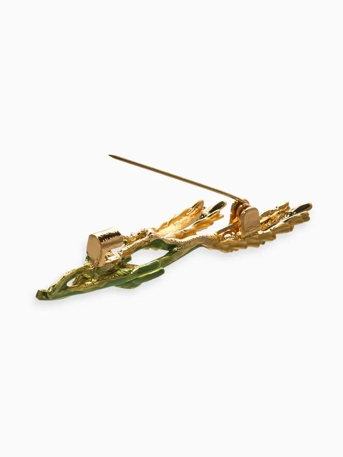 Брошь "Колосья", цвет жёлто-зелёный в золоте