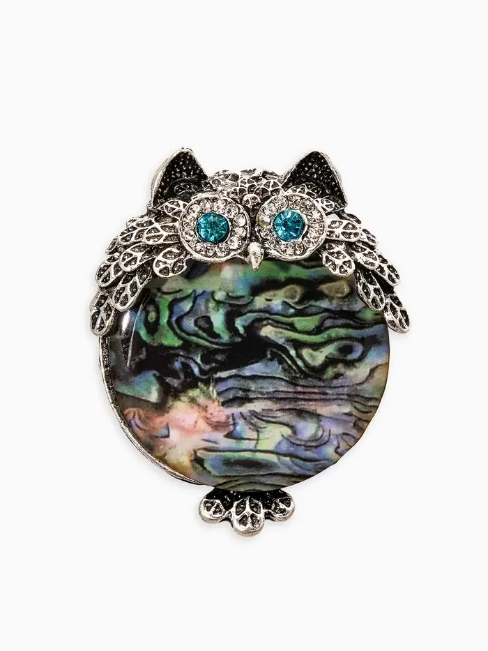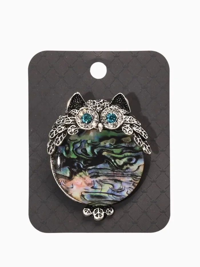 Брошь "Галлиотис" сова, цвет зелёный в чернёном серебре