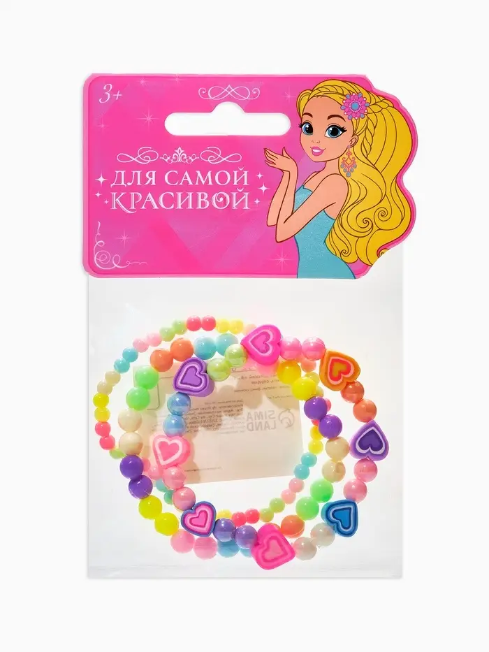 Браслет детский «Выбражулька», 3 шт. набор, бусины, сердце, цветной