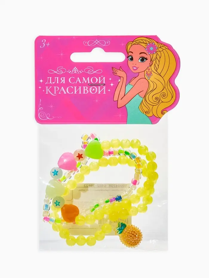 Браслет детский «Выбражулька», 3 шт. набор, ананас, бусины, цветной