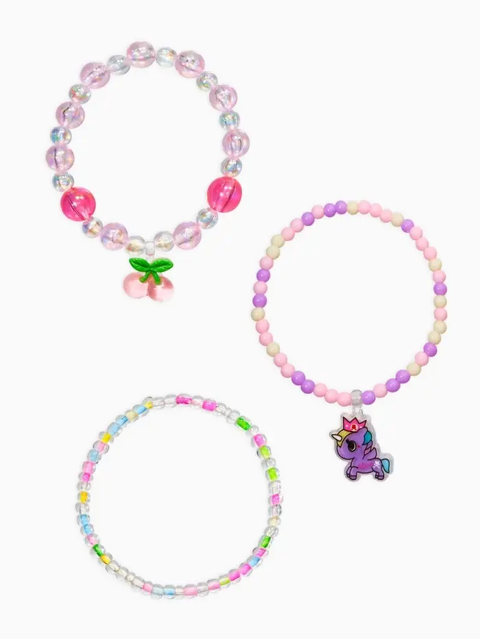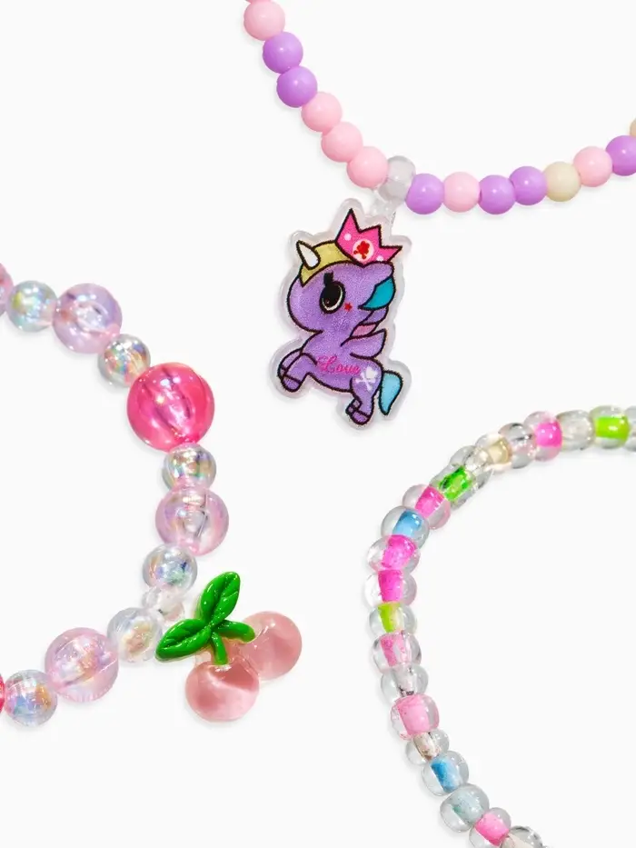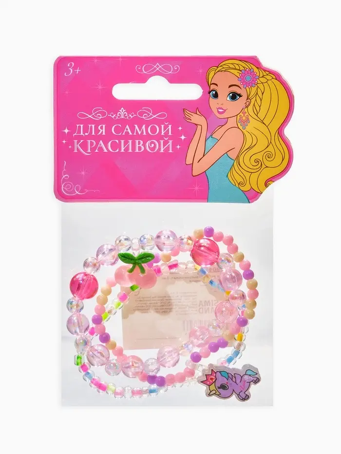 Браслет детский «Выбражулька», 3 шт. набор,единорог, вишня, бусины, цветной