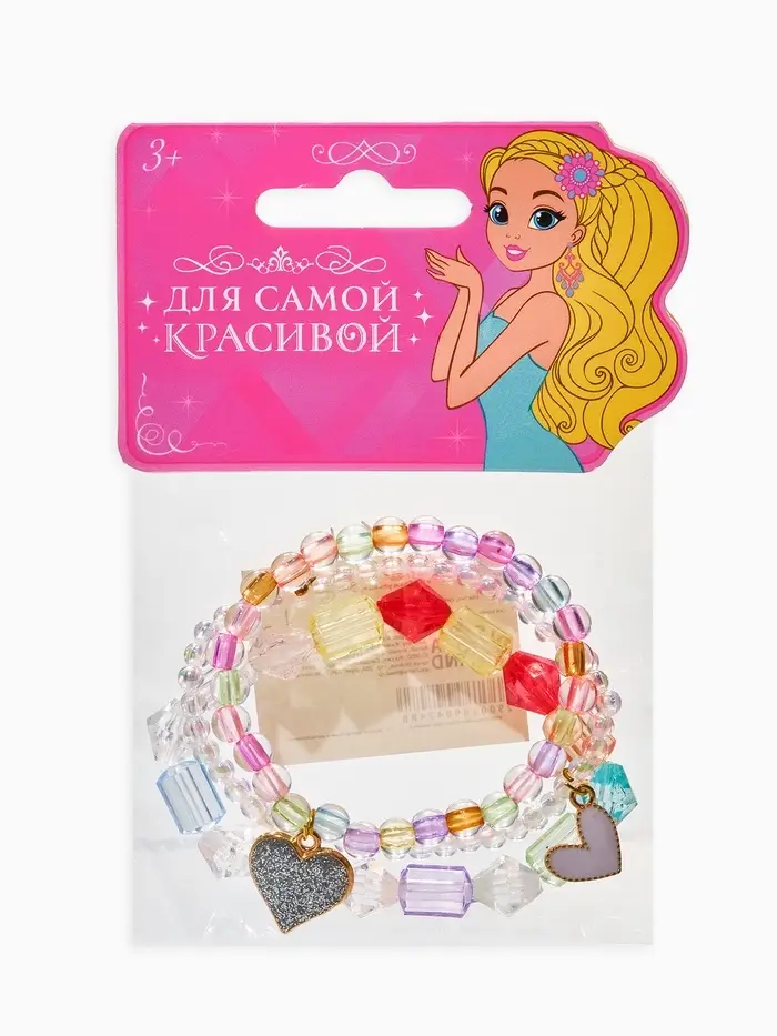 Браслет детский «Выбражулька», 3 шт. набор, сердца, бусины, цветной