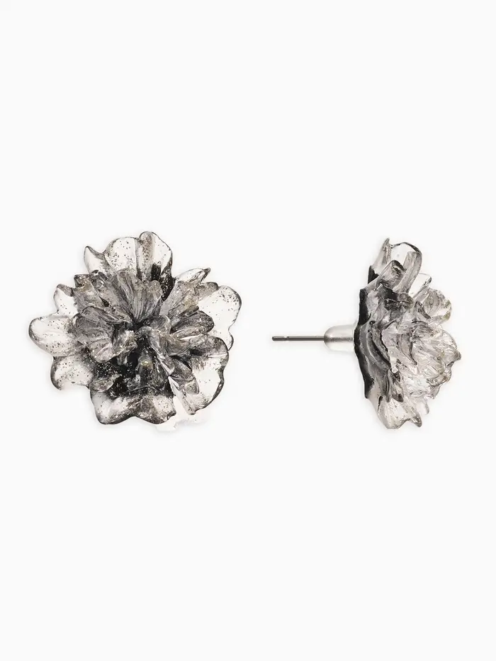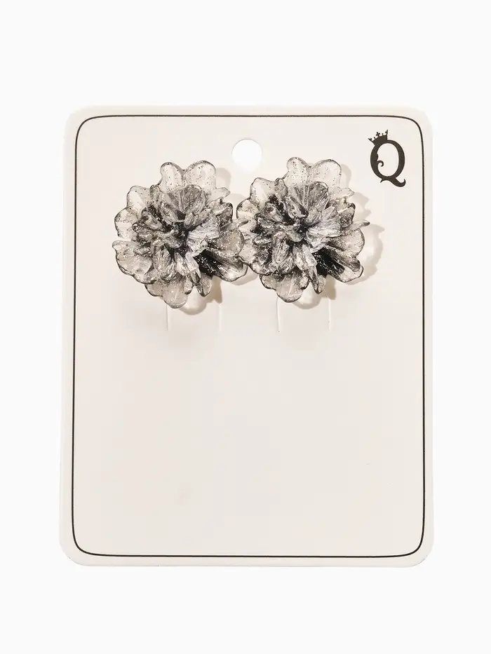 Серьги "Цветок ажурный воздушный", цвет прозрачный серый с блестками