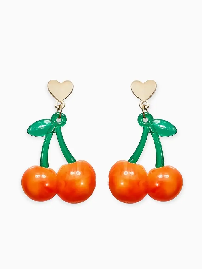 Серьги "Вишня" сердечки, цвет красно-жёлтый в золоте