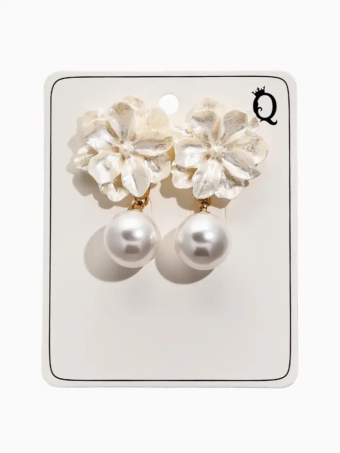 Серьги "Цветок с жемчугом", цвет молочный в золоте