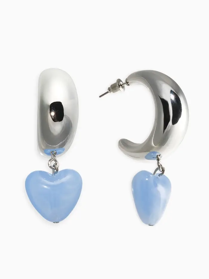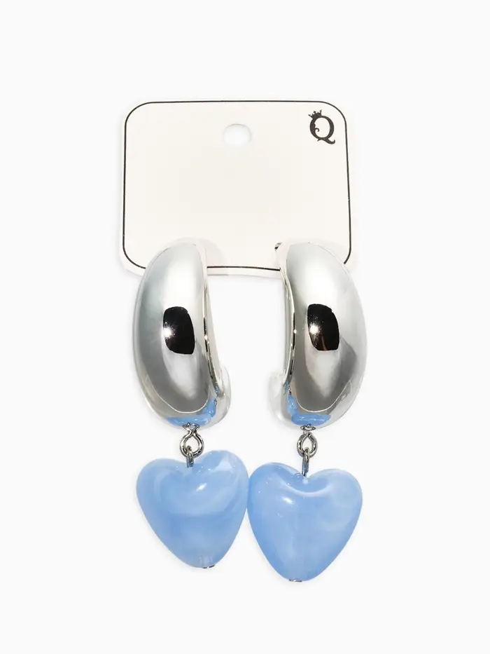 Серьги "Новый стиль", сердечки, цвет голубой в серебре d3см