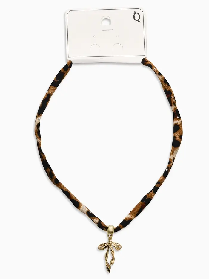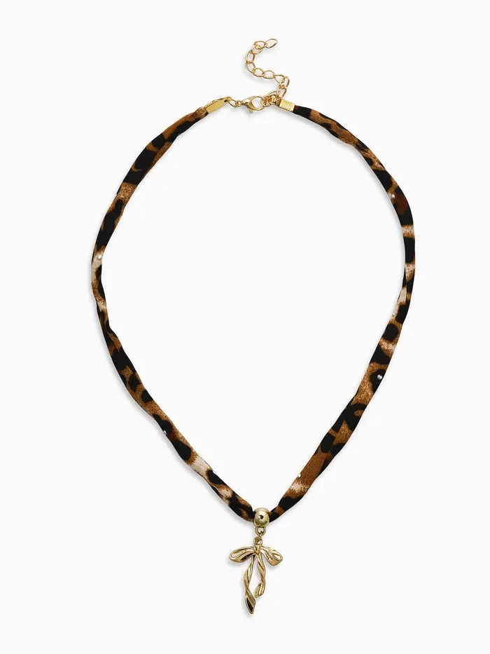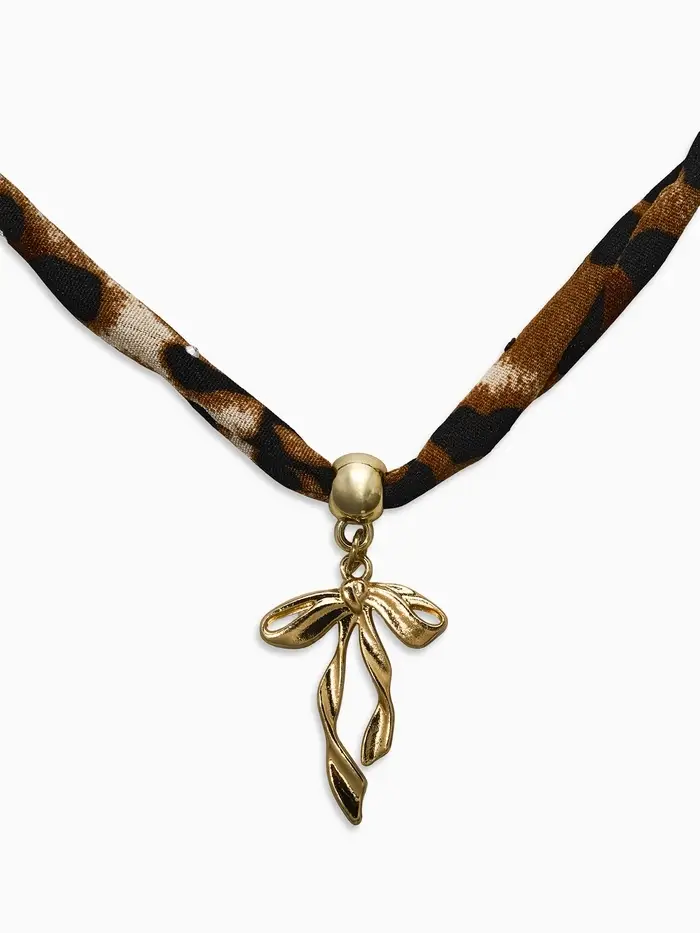 Колье "Новый стиль" бантик, леопард, в золоте 40+удл