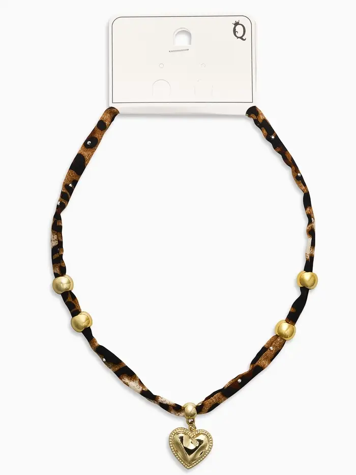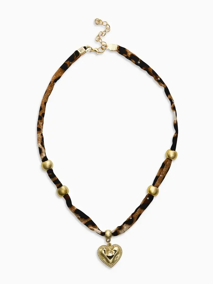 Колье "Новый стиль" сердечко, леопард, в золоте 40+удл