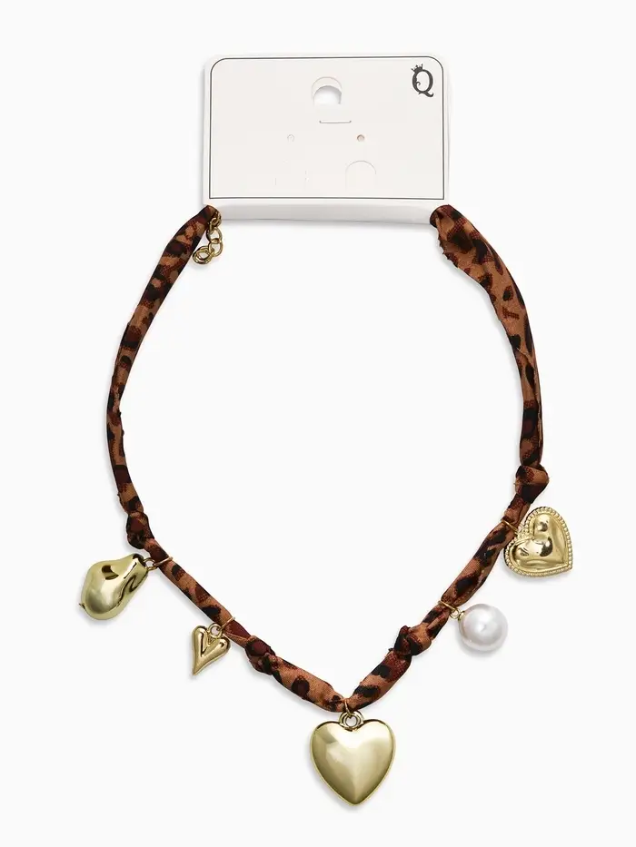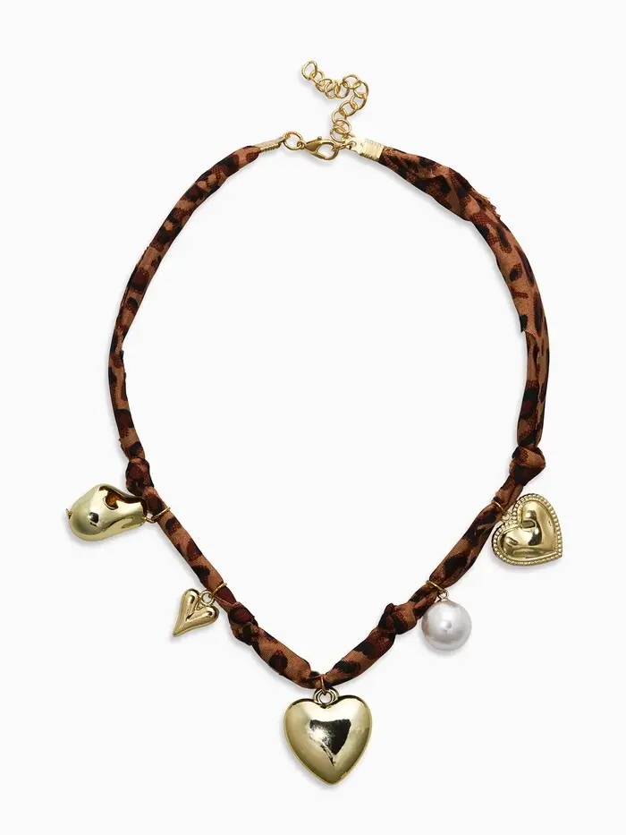 Колье "Новый стиль" микс подвесок, светло-коричневый леопард, в золоте 40+удл