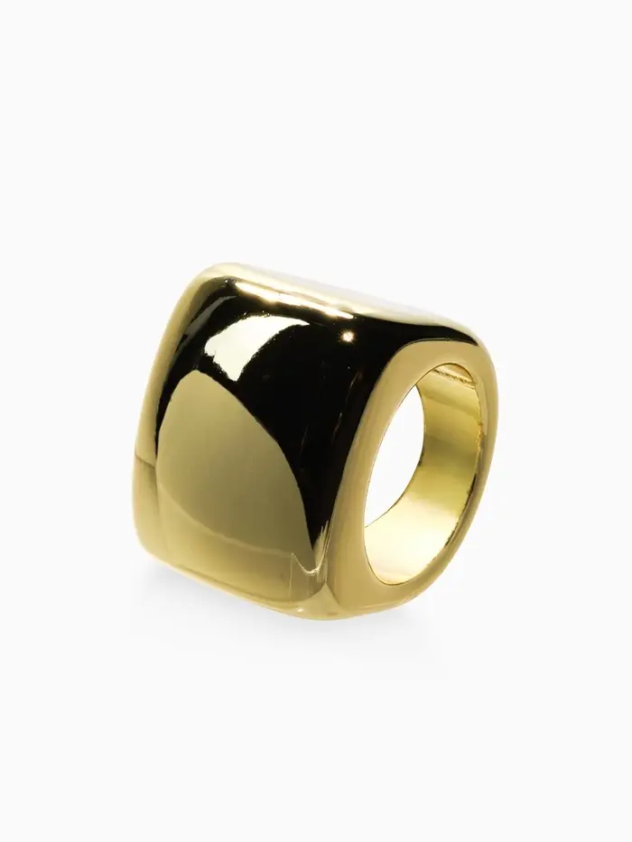 Кольцо пластик "Объемный квадрат", р-р 17, цвет золото