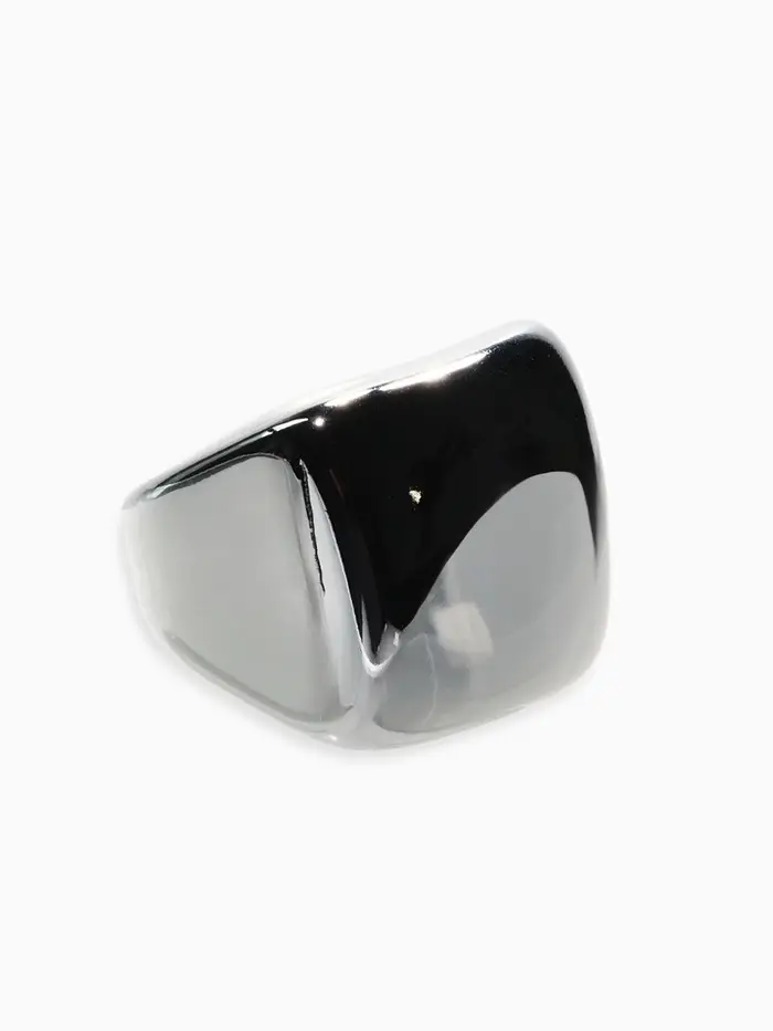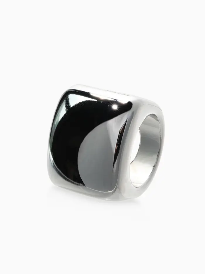 Кольцо пластик "Объемный квадрат", р-р 17, цвет серебро
