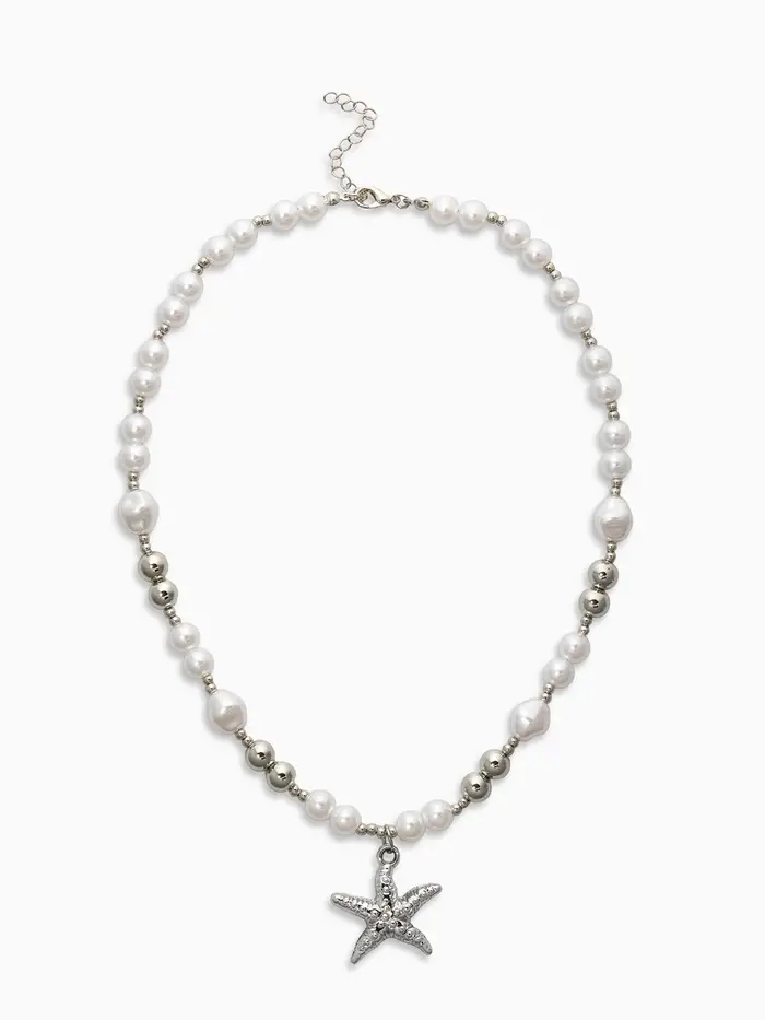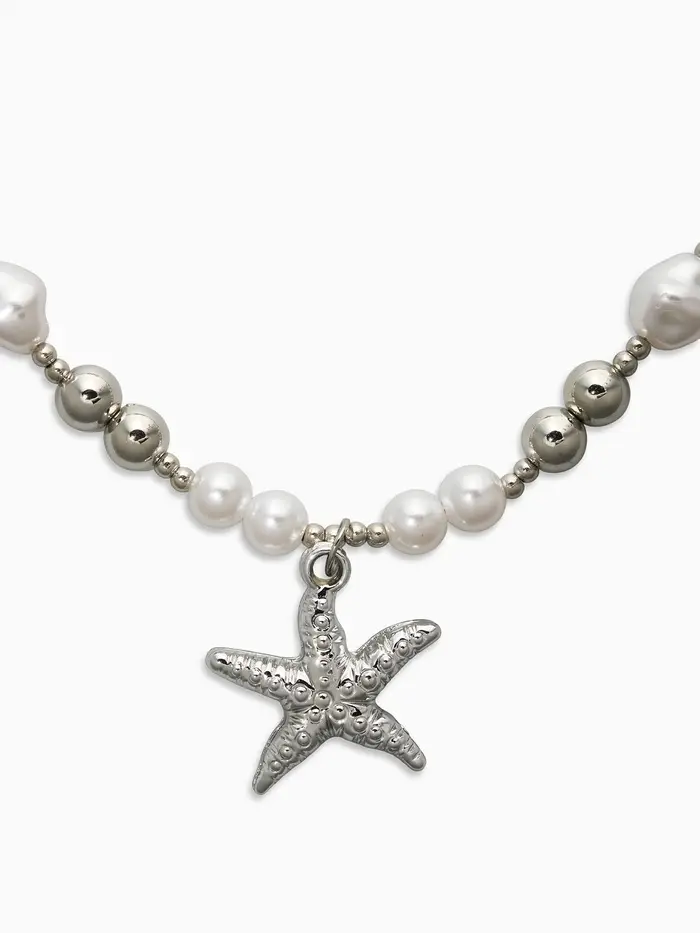 Кулон на жемчужных бусах "Морская звезда", цвет белый в серебре