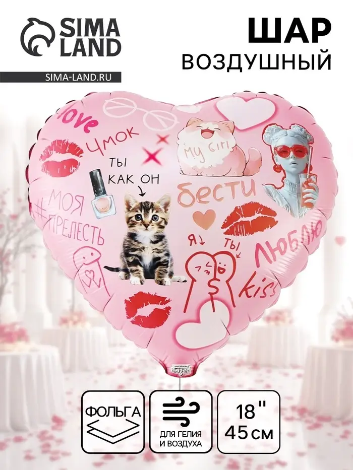 Воздушный шар фольгированный 18" «Бести подруге. Сердце»
