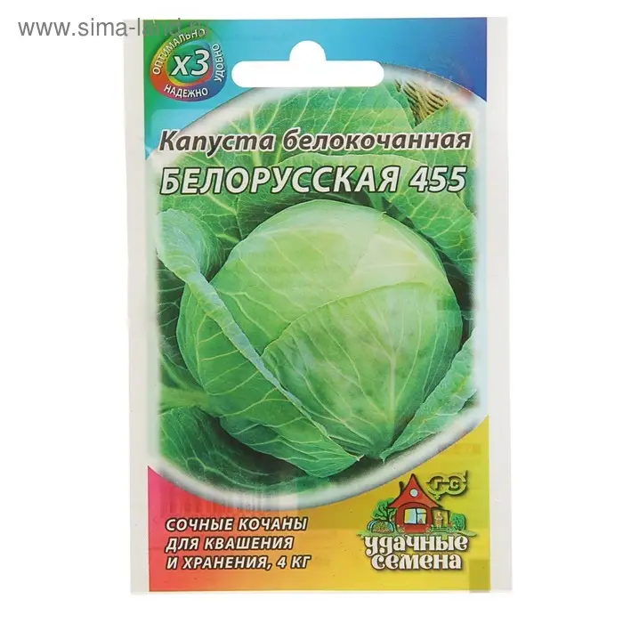 Семена Капуста белокочанная "Белорусская 455", для квашения, 0,1 г серия ХИТ х3