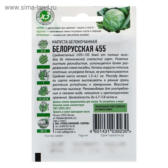 Семена Капуста белокочанная "Белорусская 455", 0,3 г