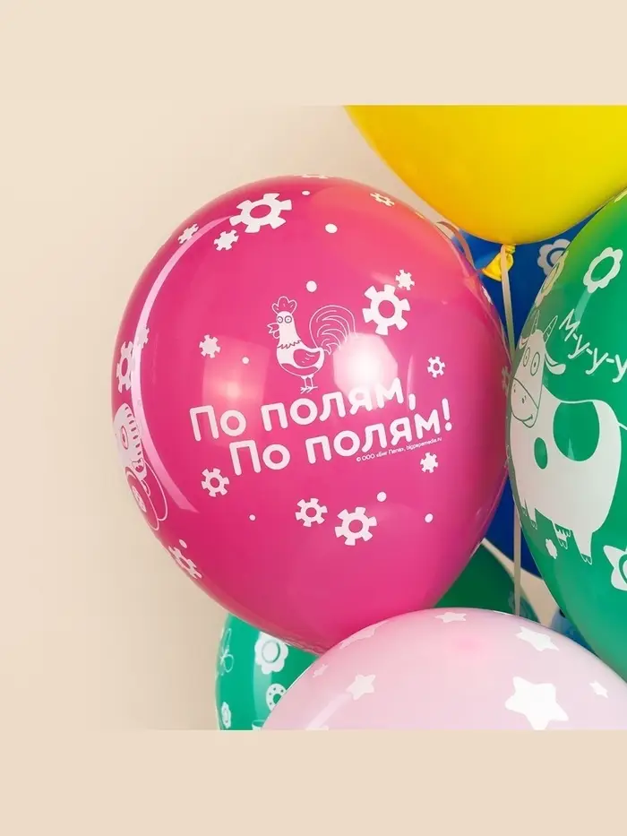 Воздушный шар латексный 12" «Синий трактор», ассорти, 25 шт.