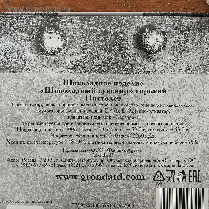 Шоколадное изделие «Шоколадный сувенир», горький «Пистолет», 170 г