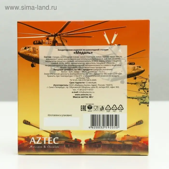 Изделие из шоколадной глазури "Медаль. Успехов на всех фронтах " 40 г