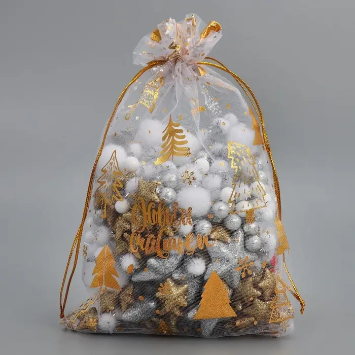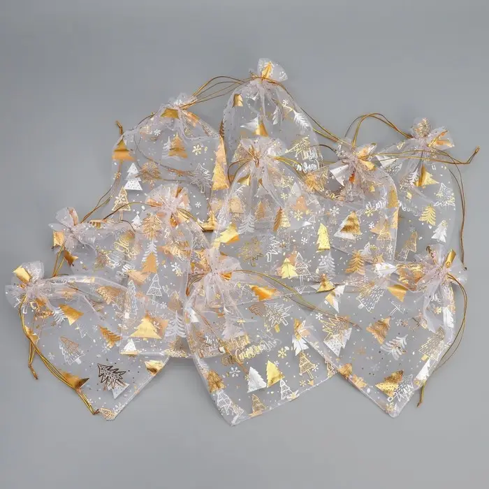 Набор мешков «С Новым счастьем!», органза, 10 шт, 16 х 24 см
