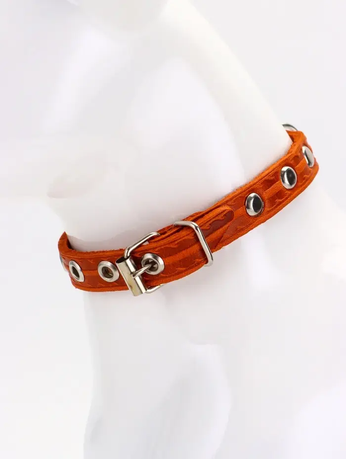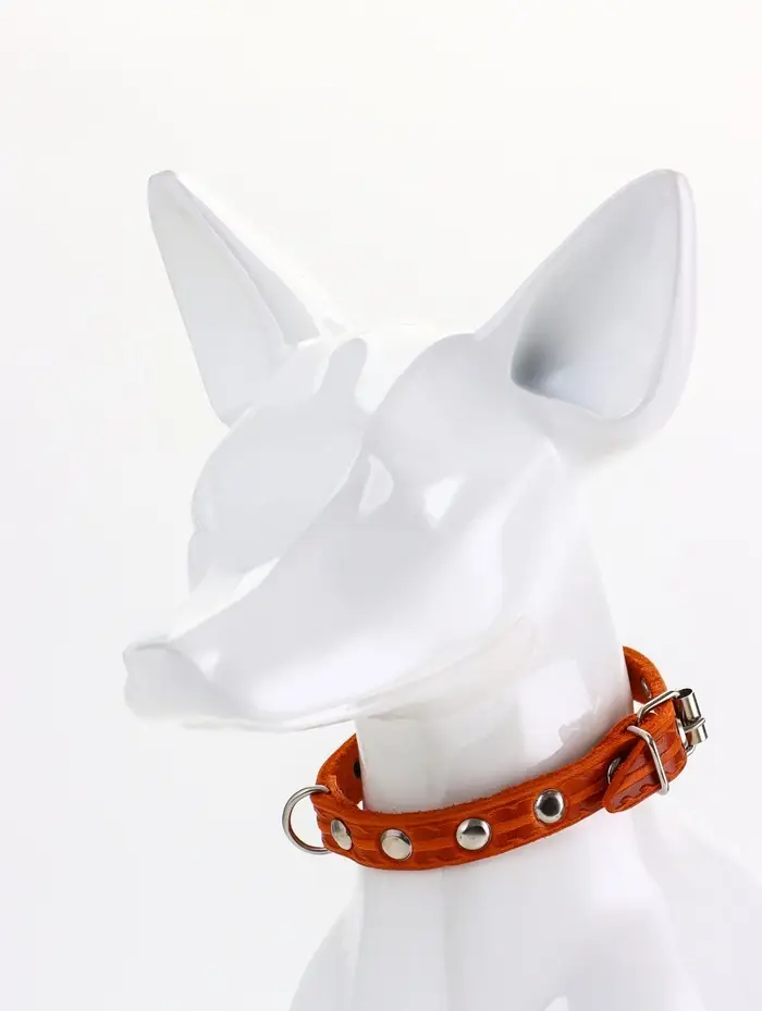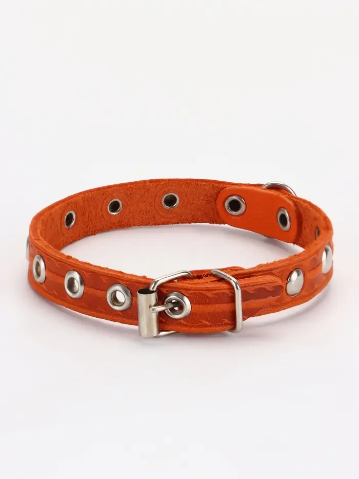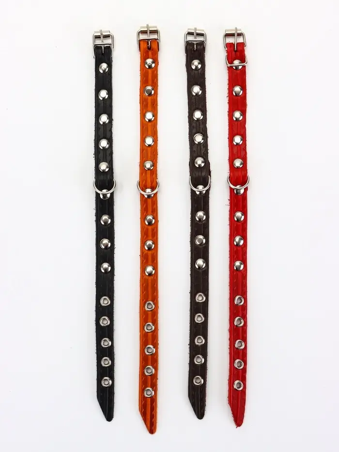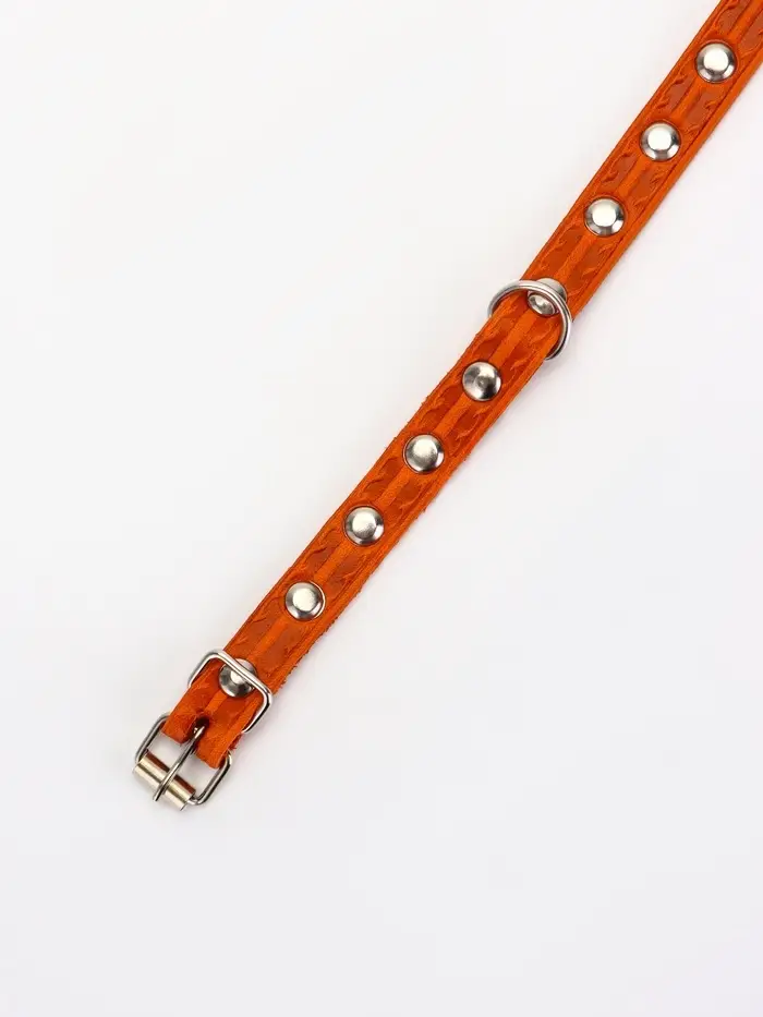 Ошейник кожаный однослойный украшенный, 1,2 см, ОШ 20-26 см микс цветов