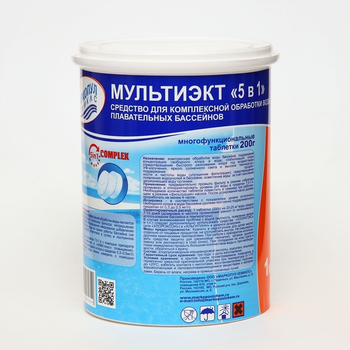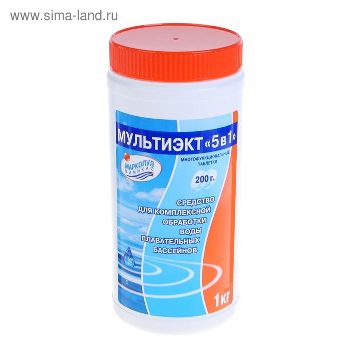 Дезинфицирующее средство "Мультиэкт 5 в 1", для воды в бассейне, комплексный препарат, таблетки 200 г, 1 кг