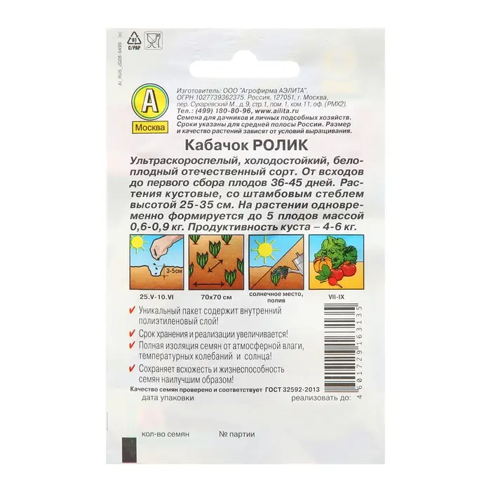 «Ролик» — ультраскороспелый, холодостойкий отечественный сорт кабачков. Растение формирует овальные гладкие плоды с нежной мякотью. Одновременно на растении может быть до 5 плодов.