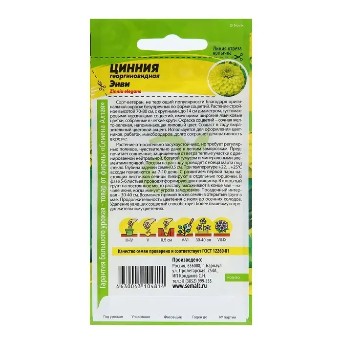 Семена цветов Цинния "Энви", георгиновая, Сем. Алт, ц/п, 0,3 г
