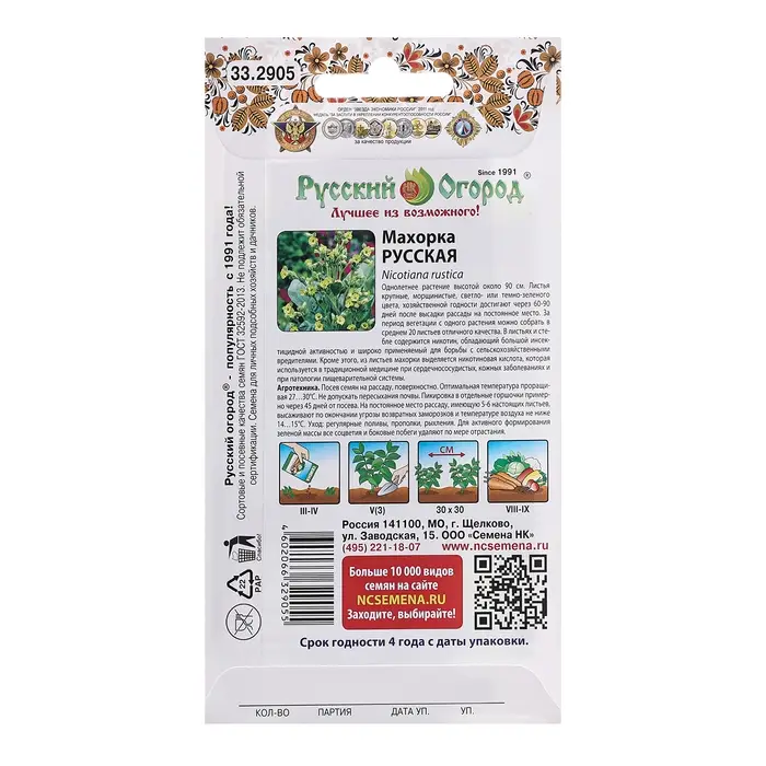 Семена Махорка "Русская", ц/п, 0,01 г