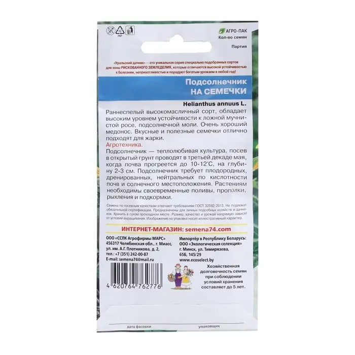 Семена Цветов Подсолнечник "На семечки" , 0 ,05 г
