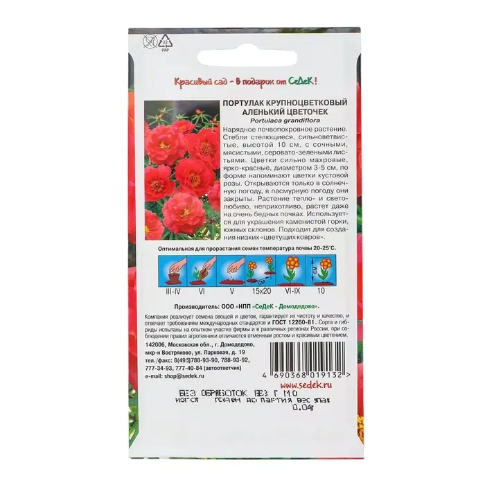 Семена цветов Портулак "Аленький цветочек", Евро, 0,04 г