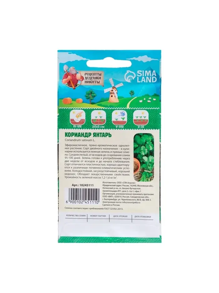 Семена кориандра "Янтарь" – это высокоурожайный сорт, известный своим ярким ароматом и универсальностью в кулинарии.