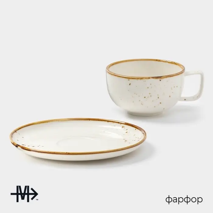 Чайная пара Magistro OliveQueen, 220 мл, 15×15 см, фарфор, белая