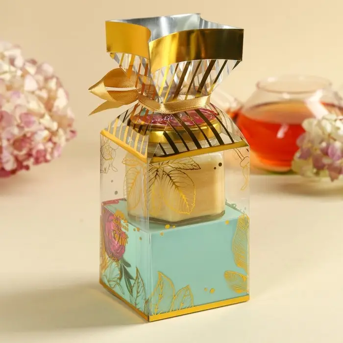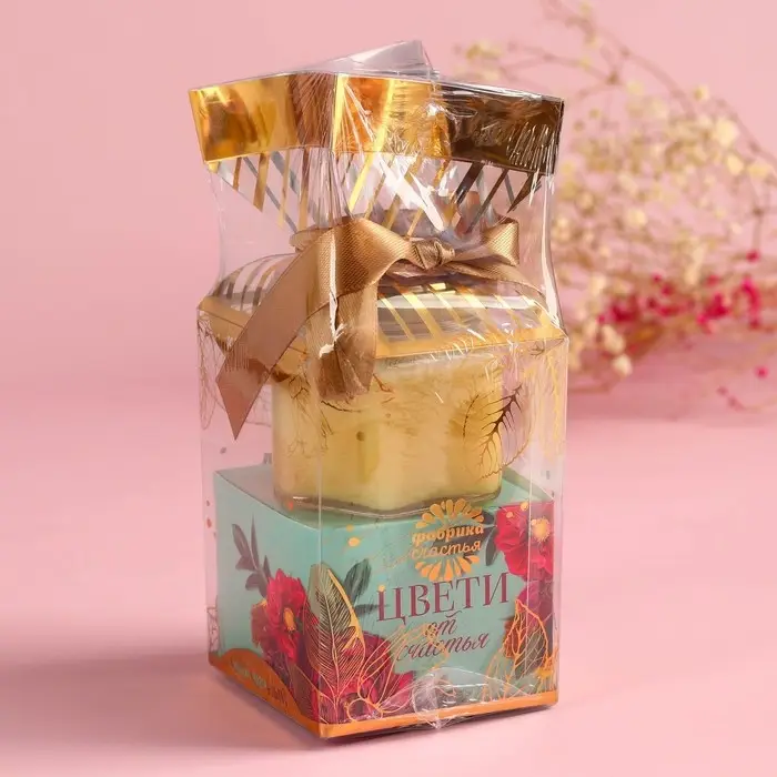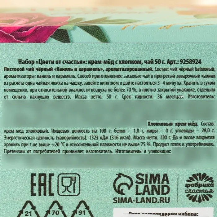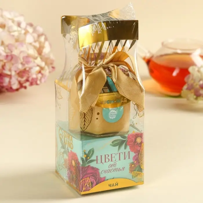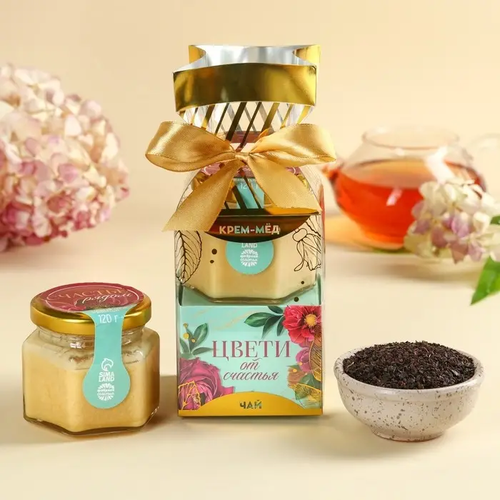 Набор «Цвети от счастья»: крем-мёд с хлопком 120 г., чай чёрный с апельсином и шоколадом 50 г.