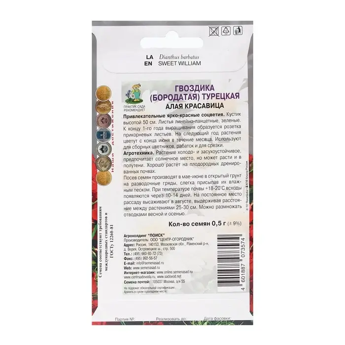 Семена цветов Гвоздика Турецкая "Алая красавица" 0,5 г