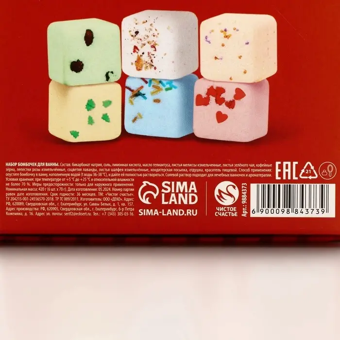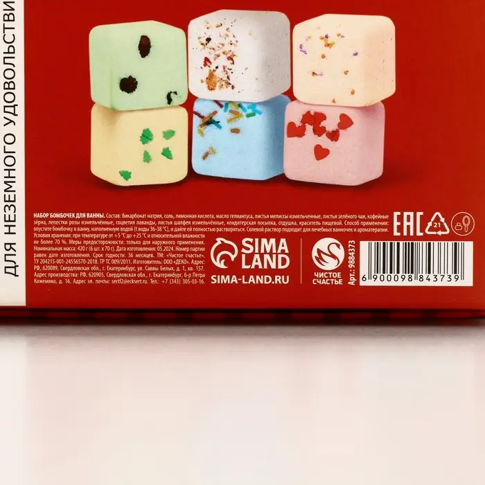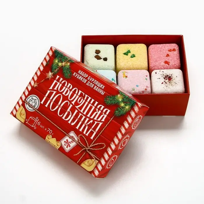 Набор бомбочки для ванны с добавками «Праздничная посылка», 6×70 г, Чистое счастье