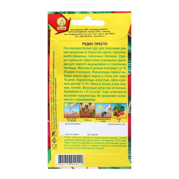 Семена Редис Смесь Скороспелых сортов,2 гр