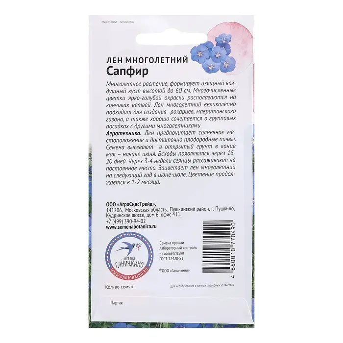 Семена цветов Лен "Сапфир многолетний", 10 шт